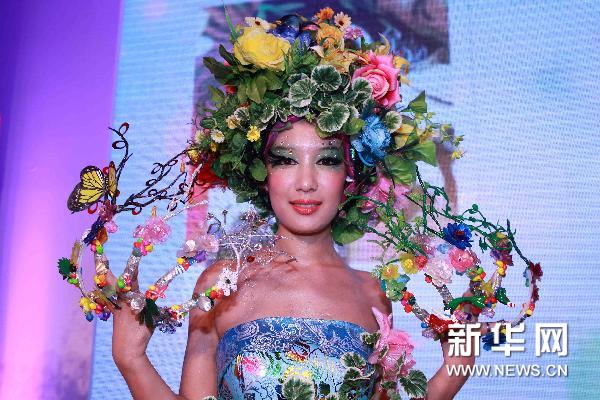6月29日,模特在“2011中國國際美甲藝術邀請賽”上展示美甲造型。當日,“2011中國國際美甲藝術邀請賽”在北京全國農(nóng)業(yè)展覽館舉行。選手們分別參加了創(chuàng)意甲、彩繪甲等項目的角逐。多姿多彩的美甲造型讓觀眾大開眼界。新華社發(fā)(陳曉根 攝)