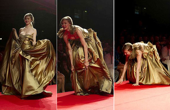 歷年T臺上摔跤事故頻頻,讓不少大牌模特吃盡苦頭出盡洋相。駕馭著10厘米以上的高跟鞋,模特在聚光燈下和無數攝影機前,以及萬眾目光下,轟鳴背景音樂中,邁著“搖晃”的貓步,要有多大勇氣才能讓自己顯得信心十足?讓我們來看看那些每一步都如履薄冰卻依舊運氣欠佳的模特們。