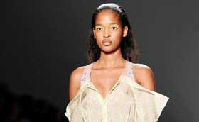 9月11日,在美國紐約舉行的2012紐約春夏時裝周上,模特展示TRACY REESE品牌的服裝。當日,2012紐約春夏時裝周進入第4天。紐約時裝周每年舉辦兩次,2月舉辦當年秋冬時裝周,9月舉辦次年春夏時裝周。紐約時裝周每年吸引觀眾逾23萬人次,為紐約創收16億美元。新華社/路透