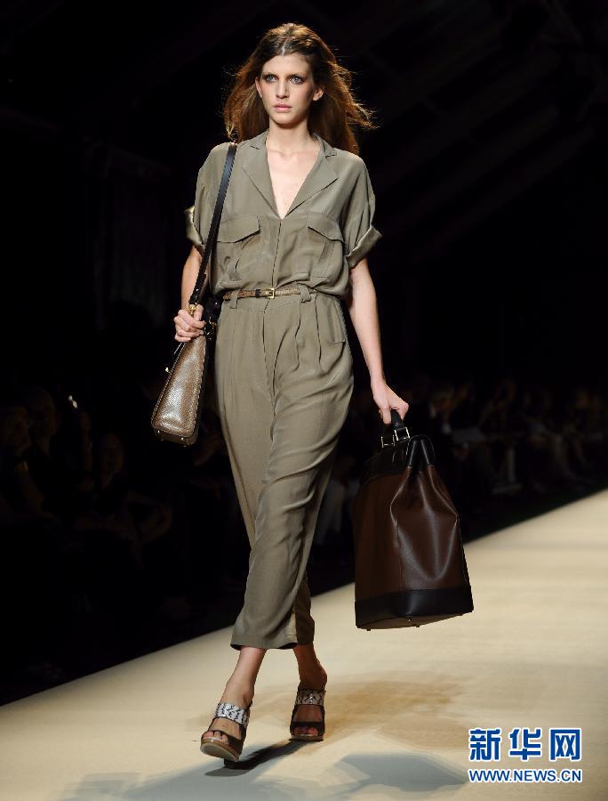 9月23日,在意大利米蘭斯福爾扎城堡,模特展示意大利著名品牌Trussardi服飾。當天,Trussardi在米蘭2012春夏女裝時裝周上慶祝創(chuàng)立百年。 新華社記者王慶欽攝
