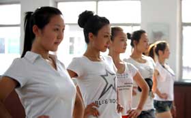 9月24日晚,由第36屆國際比基尼小姐大賽全球總決賽組委會與浩沙服飾聯手在山東青島奧帆中心舉行浩沙之夜“最佳DIY單項獎”評選,圖為參賽的各國比基尼佳麗身穿自創新款“比基尼”展示風采。中新社發 錢興強 攝