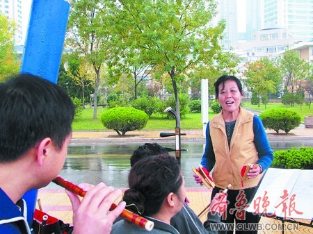 19日,隨著一場秋雨的來臨,島城連續5天來出現的秋季高溫現象宣告結束,在五四廣場奧運健身道的白帆亭下,市民們拉起二胡,吹著笛子,放聲歌唱,享受秋季的清涼。