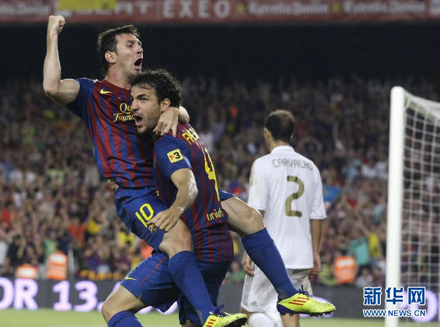 當日,在2011-2012賽季西班牙超級杯足球賽次回合比賽中,巴塞羅那隊以3比2險勝皇家馬德里隊,并以總比分5比4奪得超級杯。新華社/路透