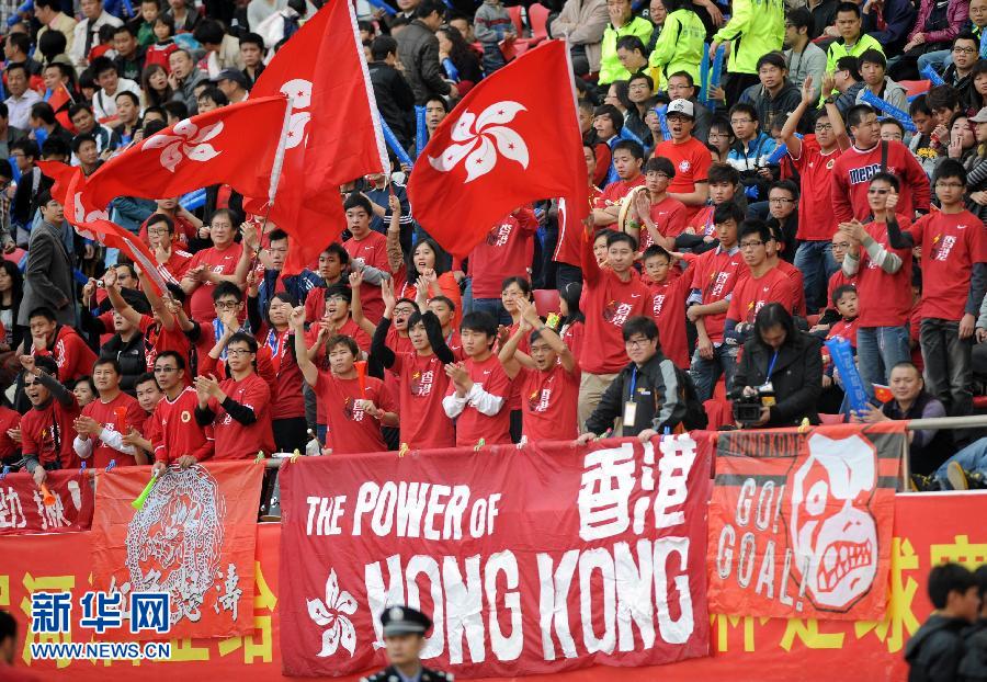 1月1日,香港球迷在比賽中加油助威。當(dāng)日,第34屆省港杯足球賽第二回合比賽在廣東省惠州市奧林匹克體育場舉行,香港隊(duì)以5比4戰(zhàn)勝廣東隊(duì),以兩回合7比6的總成績獲得冠軍。新華社記者盧炳輝攝