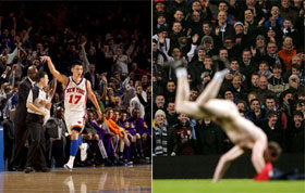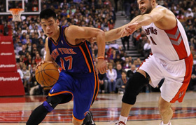 站在多倫多加航中心的地板上,林書豪聽到的是山呼海嘯般的歡呼聲。昨日,20092名球迷涌入球館,創(chuàng)下了猛龍主場賽季紀(jì)錄——很多人都是沖著這位黃皮膚的小伙子來的。林書豪的傳奇仍在繼續(xù)。他最后0.5秒三分絕殺猛龍,比分定格在90比87。林書豪砍下27分11次助攻,助攻刷新職業(yè)生涯新高,尼克斯因此取得6連勝。