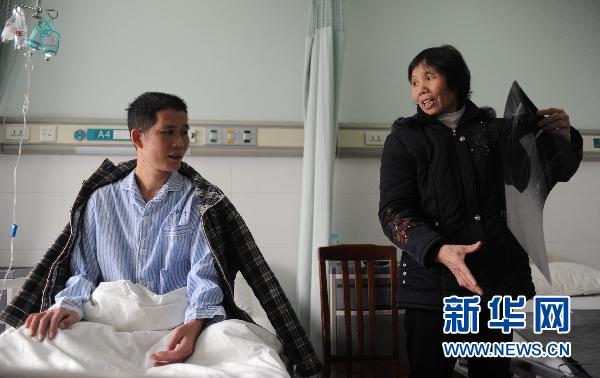 3月15日,馮德發(fā)的母親在病房內照顧患者。 13個小時換了8個器官,全亞洲第二例成功接受全腹腔八大器官移植的38歲湖南男子馮德發(fā)獲得了新生。這位“換腹人”現(xiàn)已存活了74天。 2010年9月,馮德發(fā)因腹部劇痛住院后發(fā)現(xiàn)門靜脈系統(tǒng)廣泛血栓形成。經(jīng)過中南大學湘雅二醫(yī)院專家聯(lián)合會診,洪德龍被診斷為“抗磷脂綜合癥”,血栓堵塞了洪德龍的腹腔消化器官、脾臟和肝臟通道,進行腹腔多器官聯(lián)合移植是目前唯一根治性治療方法。2010年12月31日,馮德發(fā)在手術中成功接受了來自同一人體的肝、胰、脾、胃、十二指腸、小腸、結腸和闌尾共8個臟器的聯(lián)合移植。據(jù)介紹,馮德發(fā)是全亞洲成功接受全腹腔移植手術治療的第二人,第一例是在上海某家醫(yī)院進行的,患者在成功接受該手術80多天后不幸死亡。新華社記者李尕攝