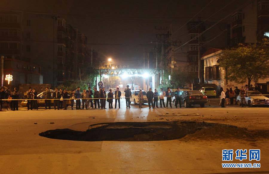 北京一道路發生塌陷 貨車陷入坑中 ( /7)