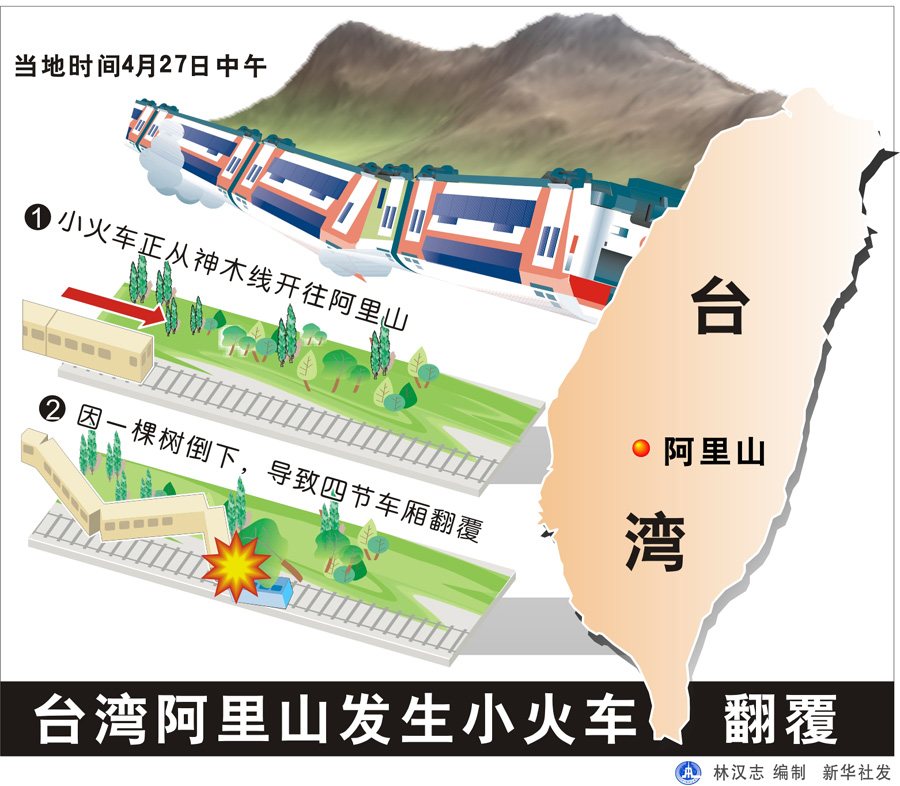 臺灣阿里山發生小火車翻覆