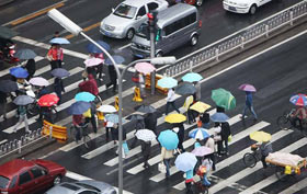 這是海口市北部海平面出現的海市蜃樓景觀(5月9日攝,拼接照片)。 5月9日下午4時左右,海口市沿海出現海市蜃樓奇觀,持續一個小時左右。海市蜃樓是一種光學現象。春夏、夏秋之間,萬里無云,海水與水面的空氣層易出現較大溫差。水溫低于空氣,這時水面的氣層與空中的氣層密度便發生較大差異,光線通過密度不同的氣層便會發生折射或全反射,就形成了海市蜃樓奇觀。新華社記者 郭程 攝
