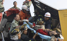 5月20日,救援車(chē)從富士康集團(tuán)鴻富錦成都公司拋光車(chē)間爆炸事故現(xiàn)場(chǎng)駛過(guò)。當(dāng)日19時(shí)許,富士康集團(tuán)鴻富錦成都公司拋光車(chē)間在生產(chǎn)中發(fā)生爆炸事故,造成2人死亡,16人受傷,其中重傷3人。目前,引起爆炸的原因正在調(diào)查中,經(jīng)公安部門(mén)排查,初步排除人為因素。 新華社記者李橋橋攝