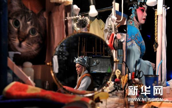 6月2日,演員們在后臺等待上場。當(dāng)日,香港“中國戲曲節(jié)2011”首場演出劇目新版粵劇《李后主》最后一次彩排在香港文化中心舉行。據(jù)悉,將有來自上海京劇院、北方昆曲劇院、上海評彈團、河北京劇院和香港本地劇社等9個劇團參加于6月3日開幕的香港“中國戲曲節(jié)2011”。新華社記者 陳曉偉 攝