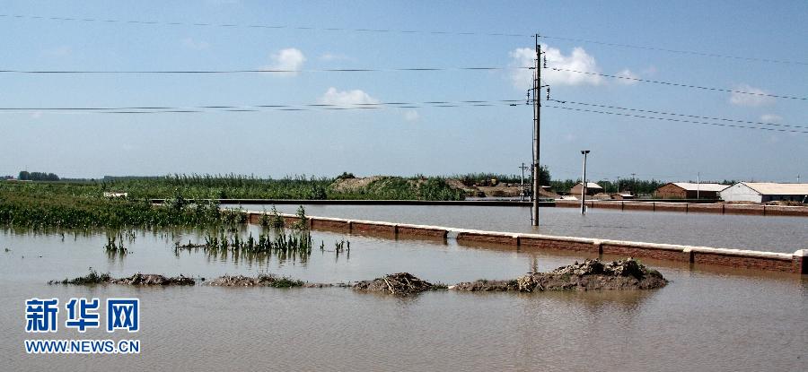 7月31日,被洪水淹沒的內蒙古通遼市開魯縣的一片田地。從7月14日至29日,內蒙古通遼市境內的扎魯特旗、霍林郭勒市、開魯縣、庫倫旗、奈曼旗等旗縣連續降雨導致多條河流發生洪災,大批群眾房屋和農田被淹,303國道被迫中斷,一條連接中國與蒙古國的光纜中斷。洪災發生以來,通遼市各級政府以及駐地解放軍和武警部隊出動大批人員、車輛和機械設備參加抗洪救災行動。截至30日,內蒙古通遼市受災人口達到21.4萬人,農作物受災面積達到64.5萬畝,其中23萬畝面臨絕收,4560間房屋受到不同程度損失,其中倒塌1575間。新華社記者李欣攝