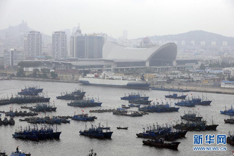 8月7日,在山東煙臺,眾多漁船紛紛回港躲避臺風“梅花”! ∨_風“梅花”逐漸逼近山東半島,山東省防汛抗旱指揮部7日20時30分啟動防汛防臺風一級預警。山東省氣象臺也于19時將臺風黃色預警信號升級為臺風橙色預警信號。受“梅花”影響,7日夜間至8日夜間,山東威海、煙臺兩市將有暴雨、大暴雨,局部地區將有特大暴雨! ⌒氯A社發(初陽 攝)