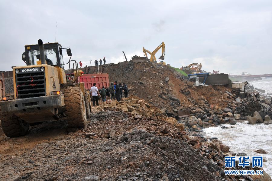 大連福佳大化防波堤壩共有兩段垮塌 海水暫時被控制住8月8日,一輛大型運輸車在現場救援。當日10時30分,受強熱帶風暴“梅花”影響,大連金州開發區一化工企業沿海處在建防潮堤壩發生潰壩,海水倒灌。記者在現場了解到,大連福佳大化(PX項目)垮塌防潮堤壩共有兩段,每段大約三四十米。目前大連市正調集大量運輸車,運送土石方及防波堤專用混凝土構件進行應急填埋。截至當日15時許,海水已暫時被控制住。新華社記者 閆平 攝