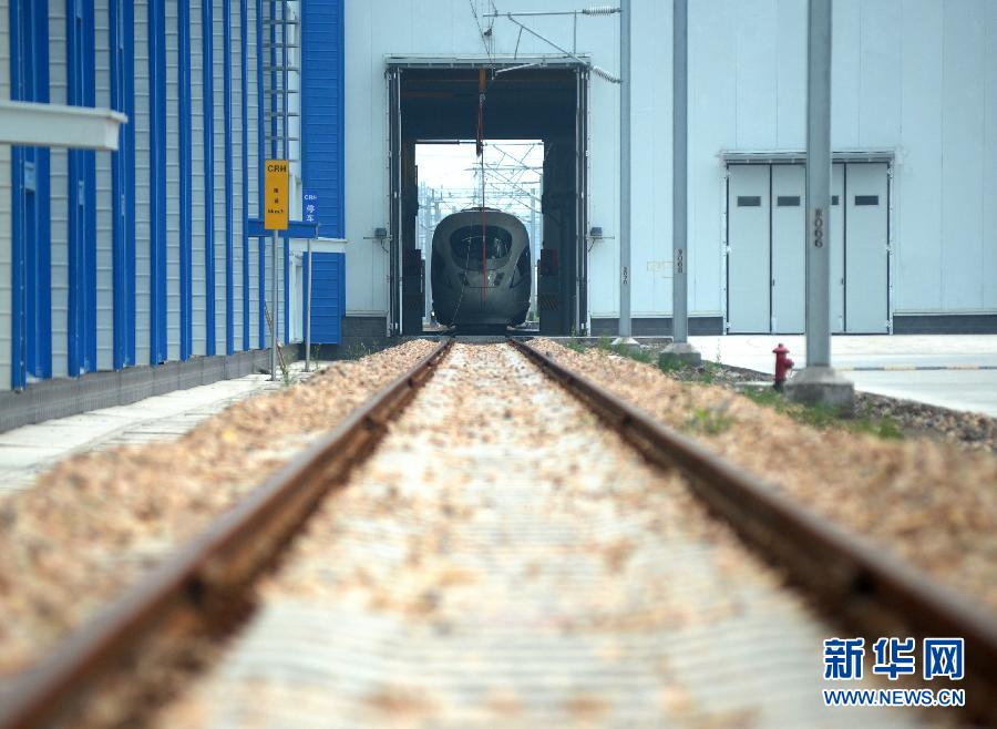 8月16日,被召回的CRH380BL型動車組停靠在上海虹橋動車所進行整修。當日起,中國北車召回在京滬高鐵運營的54列CRH380BL型動車組,上海虹橋動車所開始對部分召回停運的該型號動車組進行全面整修。據介紹,京滬高鐵從16日起實行新的運行圖,被召回的列車將在上海、北京等地的動車所進行全面整修。新華社發(鈕一新 攝)