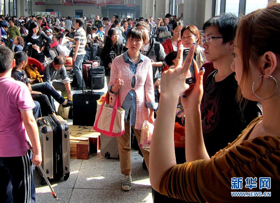 10月7日,旅客在鄭州火車站候車大廳內候車。當日是“十一”黃金周的最后一天,河南省鄭州市火車站迎來返程客流高峰。國慶長假即將結束,全國航空、鐵路、公路客運人數(shù)大幅增加,各地迎來返程客流高峰。新華社記者 陳飛 攝