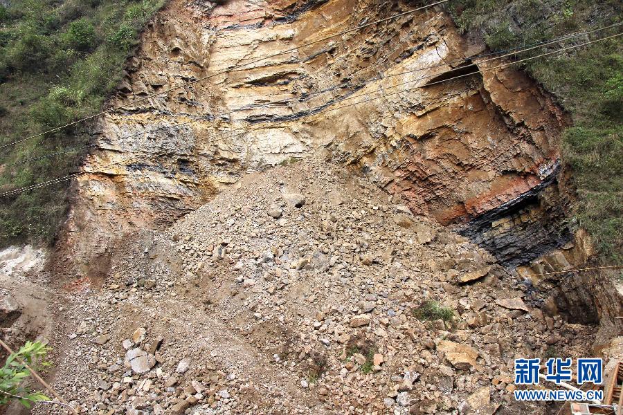 這是貴州省貴定縣定東鄉高原村竹林溝山體滑坡事發地點(10月11日攝)。因前旱后澇,貴州省貴定縣定東鄉高原村竹林溝10月10日23時5分左右發生一起山體滑坡事件,3人失蹤,目前搶險救援工作正在緊張開展。