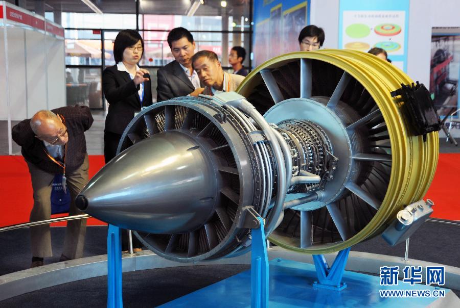 11月1日,觀眾在工博會上參觀將裝配在國產大飛機上的“長江”發動機模型。自當日起至11月5日,2011中國國際工業博覽會在上海新國際博覽中心舉行。來自全球1800余家企業,展示了從高端裝備制造到百姓日常生活的最新科技產品,吸引大批業內行家與市民的關注。新華社發(朱嵐 攝)