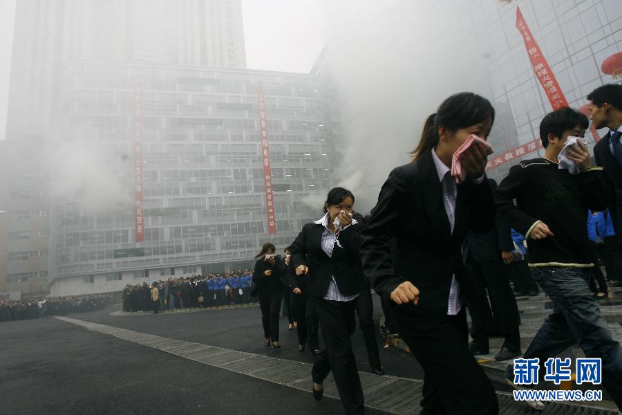 11月7日,在湖北武漢,人們在進(jìn)行逃生救援綜合演習(xí)。