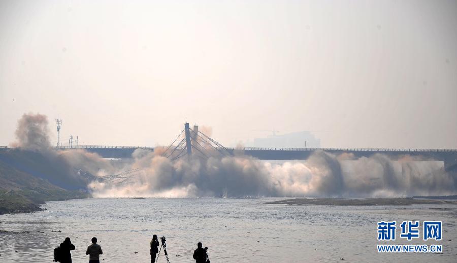 12月12日,三一大道瀏陽河老橋實施爆破。當日,長沙對城區三一大道瀏陽河老橋采用機械、爆破相結合的方式實施拆除,結束了其17年的運行歷史。長沙將于2012年1月開始新橋建設。新華社記者 趙眾志 攝