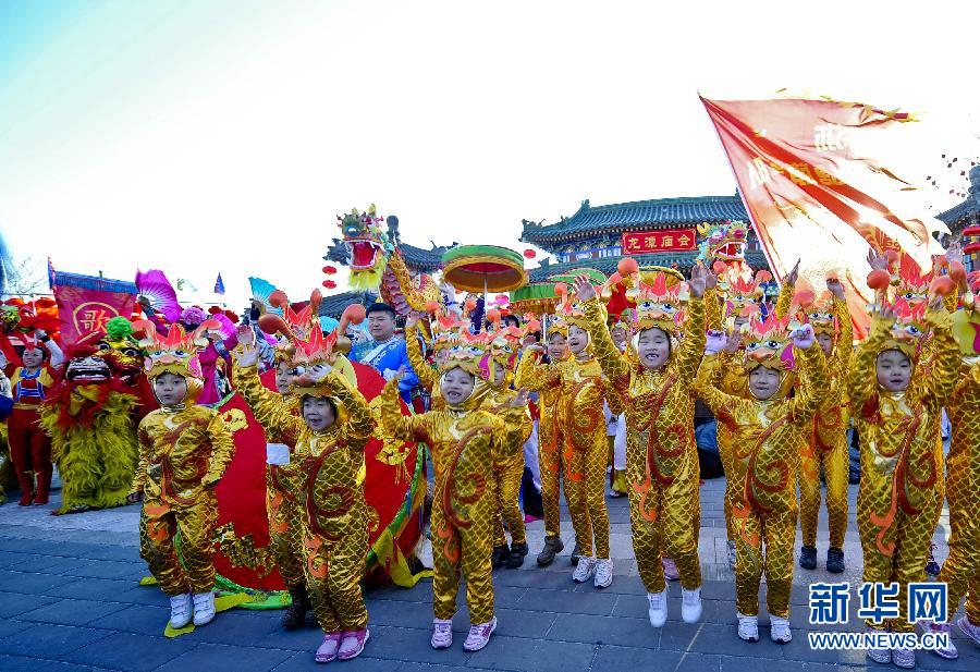 1月22日,開幕式的演員一齊給大家拜年。當(dāng)日,第二十九屆龍?zhí)洞汗?jié)文化廟會開幕式在北京龍?zhí)豆珗@主會場舉行。河北龍獅舞、滿族秧歌、朝鮮族象帽舞等節(jié)目火熱開場,歡騰熱鬧的氣氛迅速點燃了全場觀眾的熱情。本屆龍?zhí)洞汗?jié)文化廟將持續(xù)到1月29日(農(nóng)歷正月初七)。新華社記者 張宇 攝