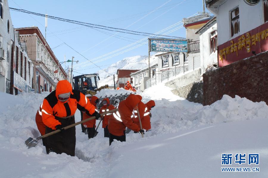 2月9日清晨,聶拉木縣養(yǎng)護(hù)段工人在清理縣城街道上的積雪。 2月8日凌晨,西藏日喀則地區(qū)聶拉木縣境內(nèi)突降暴風(fēng)雪,導(dǎo)致318國道中尼公路聶拉木縣至樟木鎮(zhèn)交通中斷,這段道路平均積雪厚度達(dá)1.2米左右,最深處達(dá)到2米。目前,當(dāng)?shù)匾呀?jīng)全面展開了抗災(zāi)救災(zāi)工作。新華社發(fā)(姜貽江 攝)