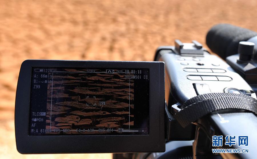 2月24日,一位記者的攝像機(jī)正拍攝云南省馬龍縣納章鎮(zhèn)方郎村一個(gè)干涸的壩塘。新華社記者 藺以光 攝