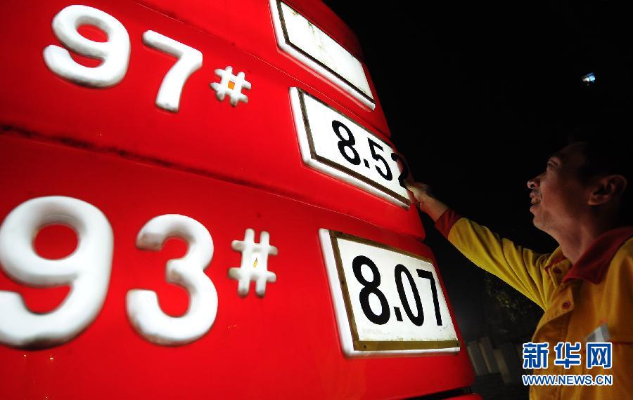 3月20日凌晨,重慶市江北區(qū)一中石油加油站的工作人員在更換汽柴油價格牌。 3月19日,國家發(fā)展和改革委員會宣布,自3月20日零時起將汽、柴油價格每噸均提高600元,相當(dāng)于全國90號汽油和0號柴油每升平均分別提高0.44元和0.51元。新華社記者 李健 攝