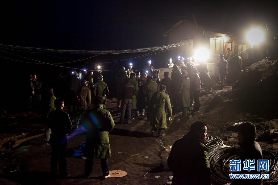 4月6日,救援人員準備下井。當日10時50分,吉林省蛟河市豐興煤礦發生透水事故,12人被困井下。夜幕降臨,現場所有救援人員仍在全力以赴投入營救。 新華社發(張楠攝)