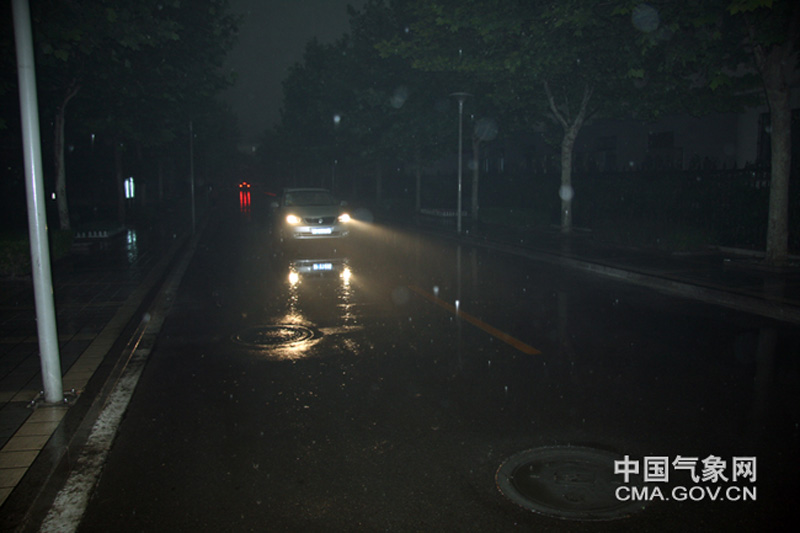 6月3日15時(shí)許,京城濃云密布,白晝?nèi)缫埂!氨锪恕痹S久的雨水瓢潑而下,路上行駛的車輛紛紛打開大燈減速慢行。圖為京城濃云密布,白晝?nèi)缫埂:鷣啍z 圖片來源:中國(guó)氣象網(wǎng)