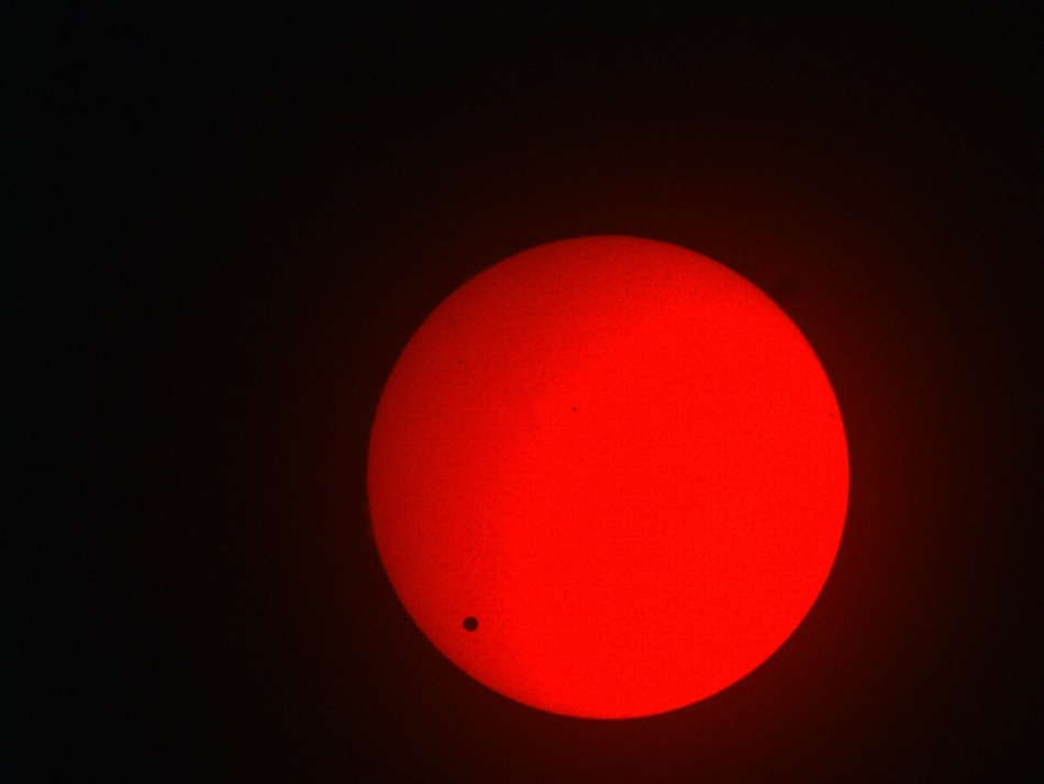 北京時間6月6日6時10分,金星凌日開始上演,全程長達6個多小時,我國絕大部分地區(qū)均可觀測。通過適當(dāng)?shù)臏p光裝置觀測,可看到太陽表面黑點狀的金星掠過(西涌天文臺深圳獨家供圖)。