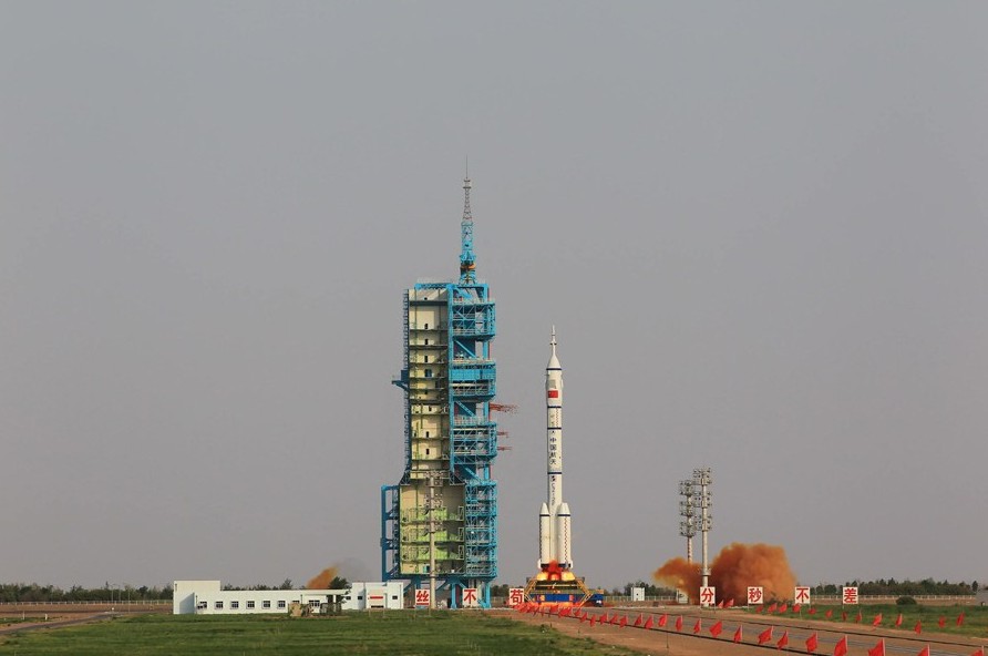 6月16日,長征二號F遙九運載火箭起飛,托舉著神舟九號飛船飛向太空。
