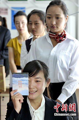 7月10日,西藏航空公司在拉薩貢嘎機場舉行西藏籍空中乘務員、安全員招聘會。共有76名應聘者參加此次招聘,其中16名通過體檢、初試、復試、筆試四個環節。其中,會藏語成為必要條件。圖為應聘者正在接受視力檢查。李林 攝