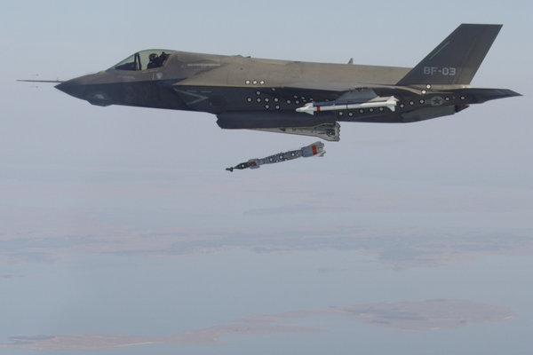 資料圖:美國F-35五代機(jī)在進(jìn)行武器投放試驗(yàn)的時(shí)候機(jī)體表面也布滿了類似的小黑點(diǎn)。