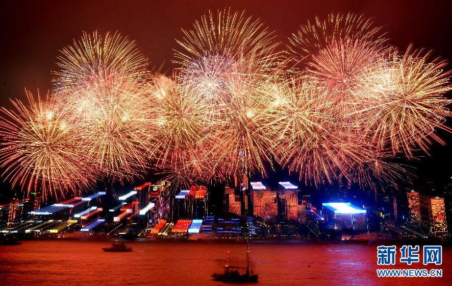 2月11日,香港維多利亞港舉行2013年農歷新年煙花匯演。此次煙花匯演共有23888枚煙花分8幕燃放,歷時約23分鐘,吸引30萬名觀眾觀看。新華社記者陳曉偉攝