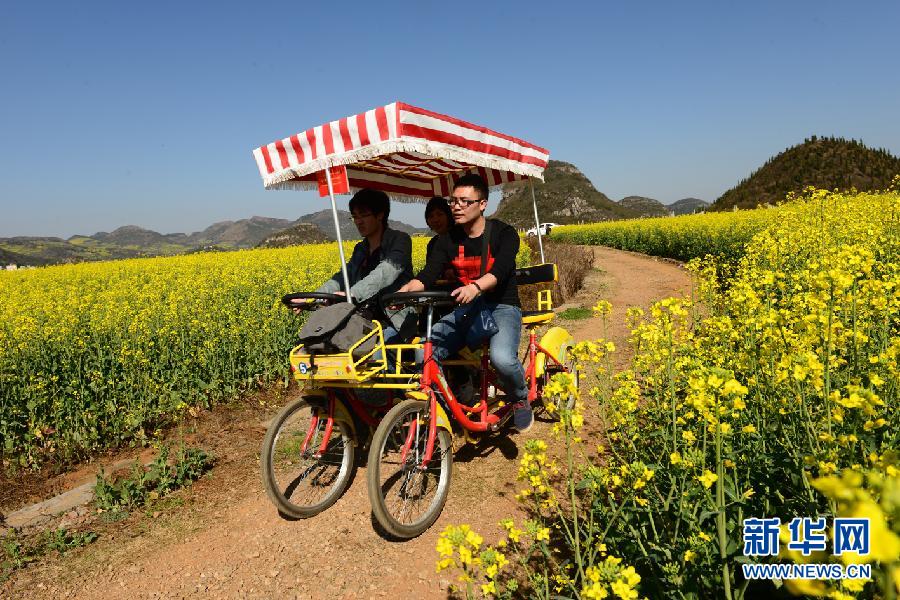 2月2日,游客在云南羅平油菜花田里賞花。春節(jié)期間,云南省羅平縣的油菜花田芳香四溢,吸引大量游客前來賞花踏青。新華社發(fā)(毛虹 攝)