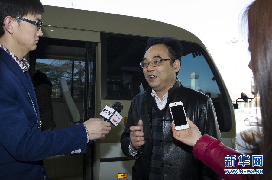 3月1日,來自湖南省的全國政協委員抵達北京首都國際機場。這是李赤群委員在接受媒體采訪。 新華社記者謝環馳攝。新華網快訊:10時40分許,來自湖南的全國政協委員乘坐CZ3123號航班抵達首都國際機場,成為首批抵京參加全國政協十二屆二次會議的京外委員。