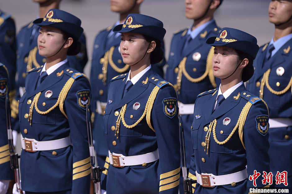 5月12日,中國國家主席習(xí)近平在北京人民大會(huì)堂東門外廣場(chǎng)舉行儀式歡迎土庫曼斯坦總統(tǒng)別爾德穆哈梅多夫訪華。中國人民解放軍三軍儀仗隊(duì)首現(xiàn)女儀仗兵身影。圖為儀式前儀仗兵作相關(guān)準(zhǔn)備。中新社發(fā) 廖攀 攝