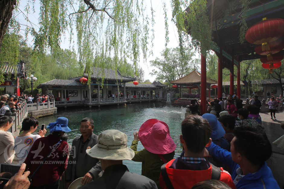 4月21日,趵突泉公園內(nèi)人山人海。當日,趵突泉水位達到27.80米,在連續(xù)三場春雨的助力下,水位一路上漲。根據(jù)濟南市水利局的數(shù)據(jù)統(tǒng)計,3月27日,趵突泉水位跌至27.49米的年度最低水位后,止跌回升,一路上漲,截至目前已漲了31厘米。大眾網(wǎng)記者 王長坤 攝