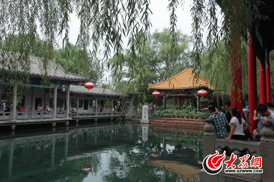 7月28日,濟南持續高溫天氣,游客在趵突泉畔賞泉游玩。當日,趵突泉實時水位一度降至27.47米。大眾網記者 王長坤 攝