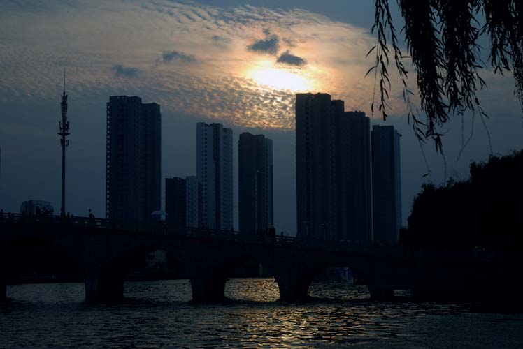 傍晚時分的濱河景區一角