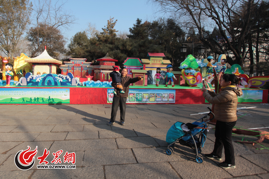 1月27日,在濟南趵突泉公園內,一組組造型各異的花燈組已經基本搭建完成了,過往的市民、游客紛紛被這日益濃郁的年味兒吸引得駐足觀看、合影留念。據了解,今年濟南市第三十七屆趵突泉迎春花燈會圍繞“金猴獻瑞滿城春”的主題,分“金猴鬧春”、 “福滿泉城”、“古韻濟南”、“泉心泉意”四個部分,共設有37組花燈。 大眾網記者 王長坤 攝