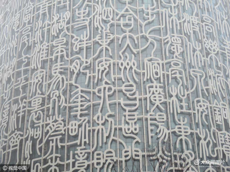 2016年3月8日,安徽合肥,一大樓被“篆書”包圍,遠遠望去,別有一番特色,然而,這上面的字很多市民表示“不認識”,被稱“天書”。