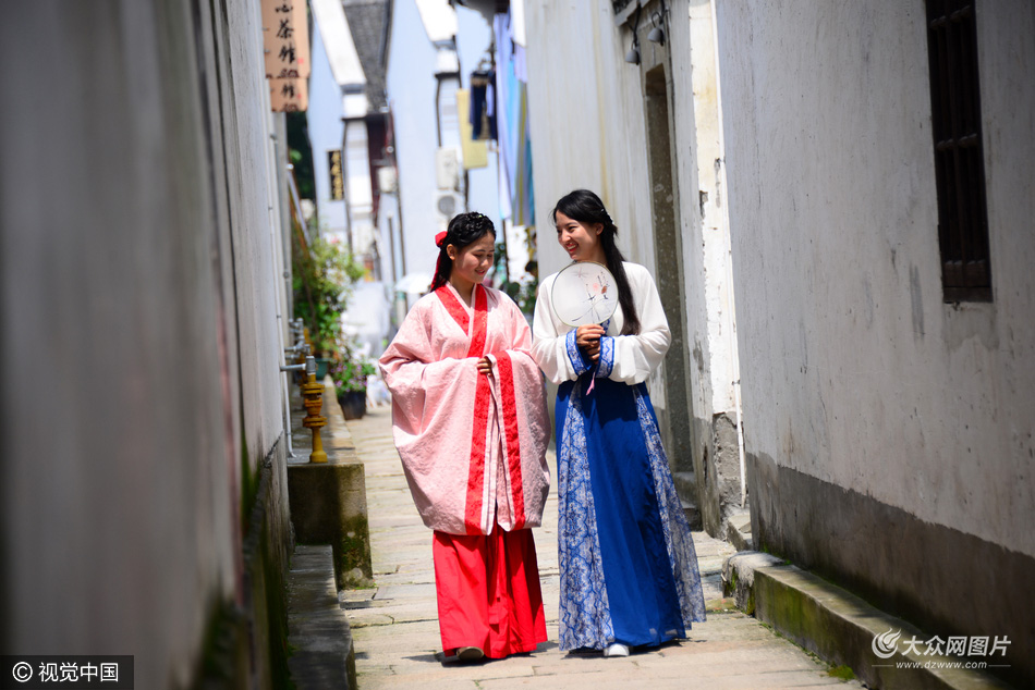 2016年06月05日,浙江省杭州市,為了迎接G20峰會,市政府在拱宸橋運河景區開展“文化杭州我先行”市民活動,現場一群來自高校的美女們穿漢服與市民互動,古典氣質引來大家瘋狂追逐拍照,場面熱鬧。