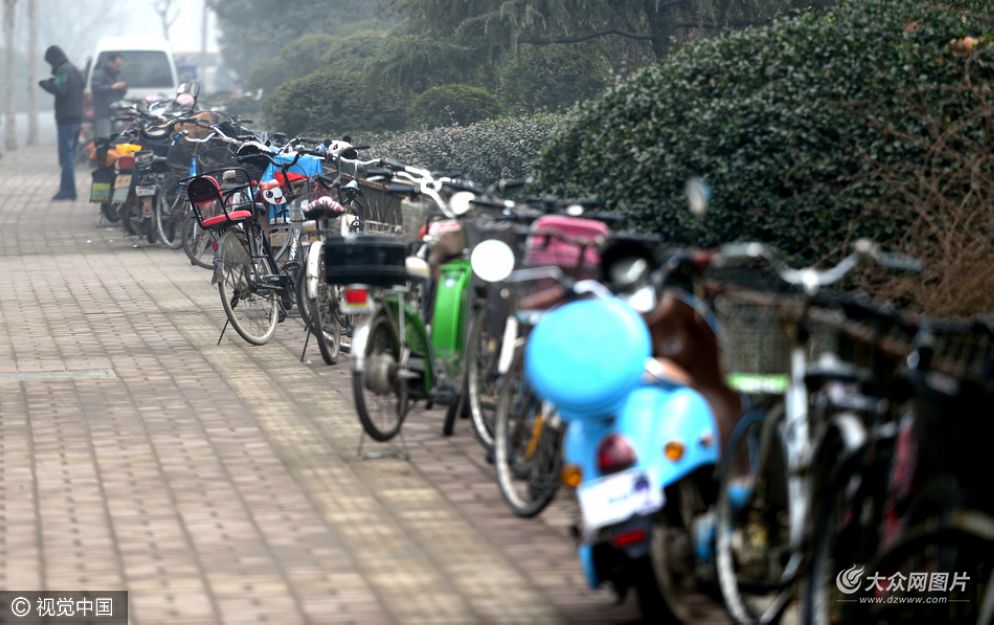 1月6日,濟南經十路臘山立交橋下南側,上百輛自行車和電動車緊貼著綠化帶護欄停放,所有車輛都用各種鎖具將車輪或車架與護欄鎖在了一起,有的電動車為了防盜,還將電池和座椅拆除,等騎行時再安裝。