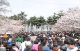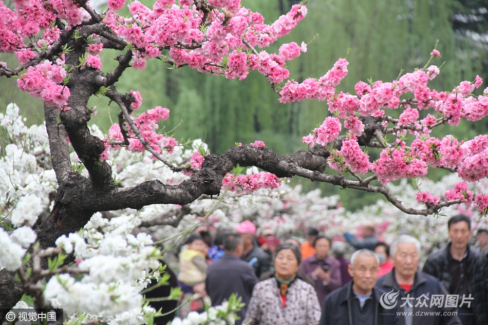 2017年4月10日,在山東濟(jì)南百花公園景區(qū)內(nèi),近百株榆葉梅競相綻放,招引眾多市民游客前來踏青遨游花海,令人流連忘返的美景吸引不少路人拍照留念。