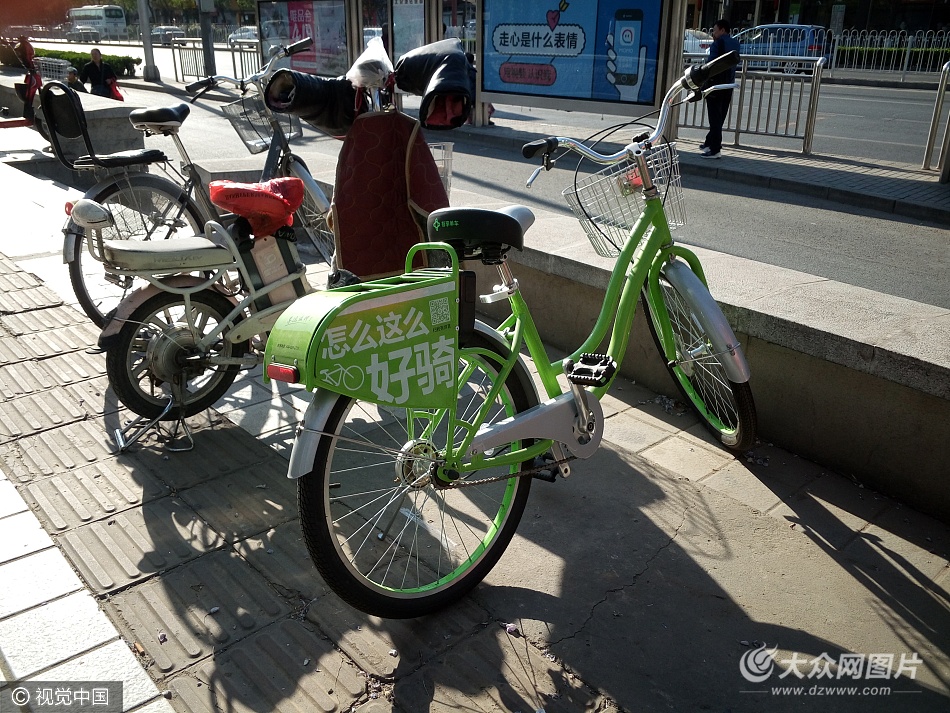 2017年4月18日,北京西城區(qū)虎坊橋路邊一輛熒綠色車身、后架上安裝著一塊黑色的太陽能板的共享單車格外引人注意,這是一款名為LIVéLO的智享單車。