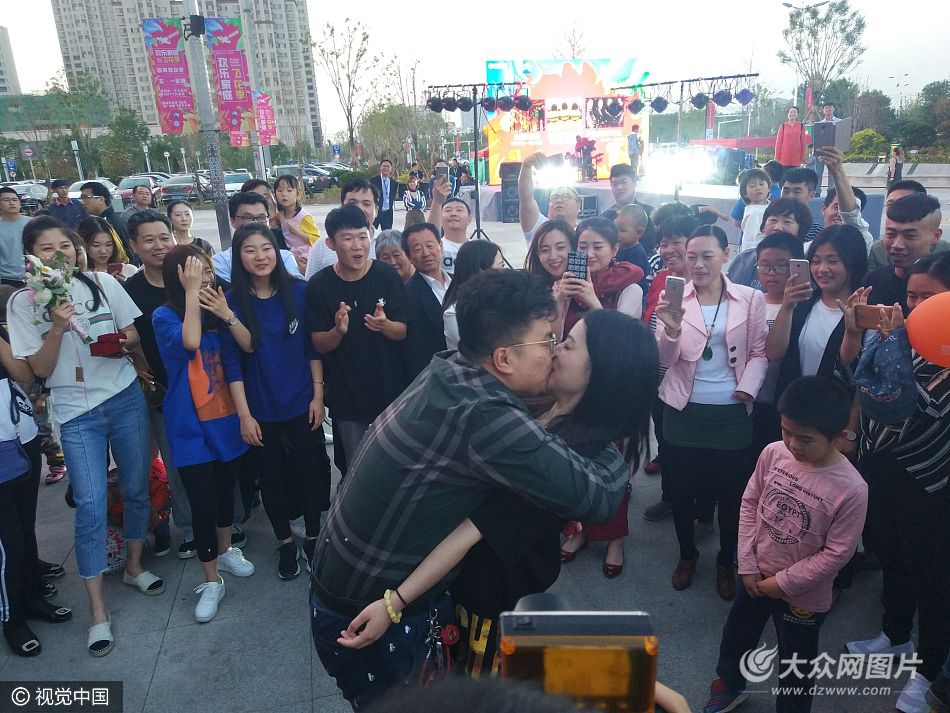 2017年4月29日,山東濱州,在一廣場上,一名時尚帥氣的胖哥當眾向一名漂亮女孩求婚。