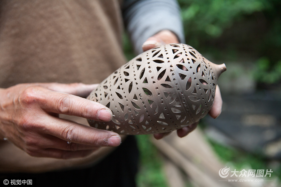2017年5月5日,山東德州,國家級非物質文化遺產——德州黑陶創始人、命名者王憲利展示精湛的黑陶制作技藝。