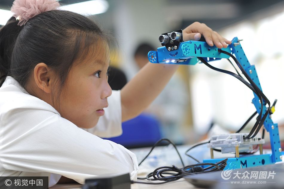2017年5月28日,山東青島。以“愛創造,愛環!睘橹黝}的2017年第三屆市南區中小學創客大賽暨青島市中小學創客大賽市南區選拔賽在山東省青島市創客大街開賽。